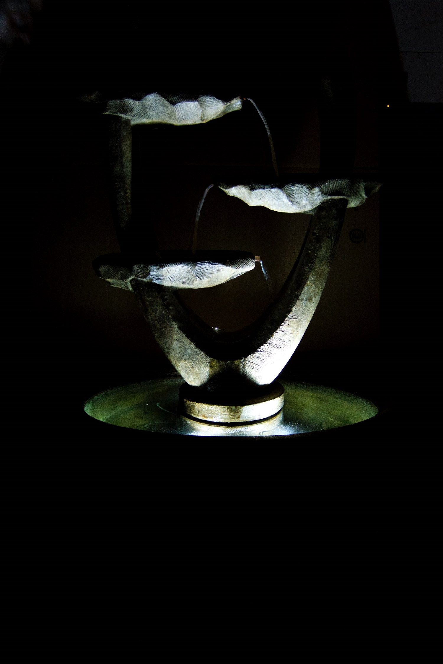 Reaching upward in an asymmetrical fashion, the Aspire Fountain is both form and function. Its glistening waters bring an ethereal element of nature to the forefront, while the natural landscape can be seen beyond. A brilliant underwater LED light kit is included for a shimmering night-time effect.