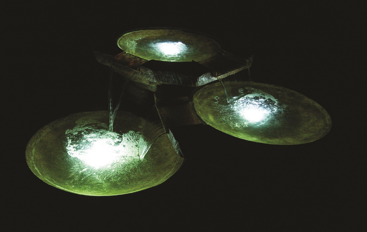 As if chiseled from rock, the Stone Basins Fountain lives naturally in your garden landscape. Three pools of copper-accented water provide soothing flow and sound in a structurally powerful design. A brilliant underwater LED light kit is included to provide a shimmering night-time effect.
