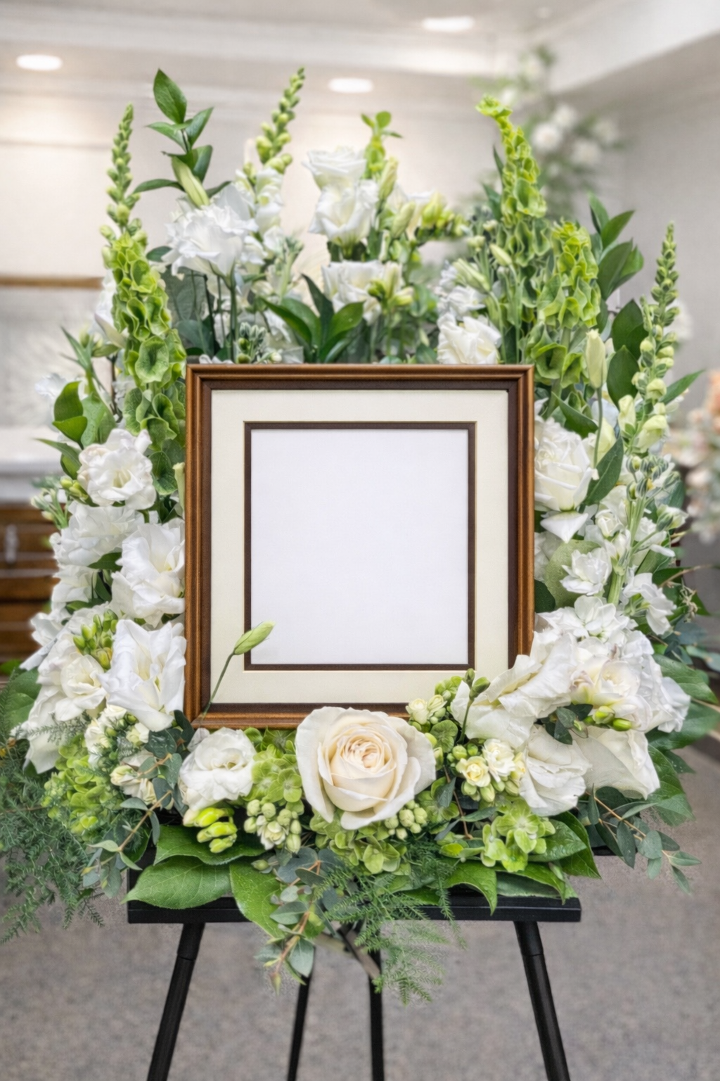 Please note: The urn and picture frame shown is for display purposes only and is not included with the floral arrangement.